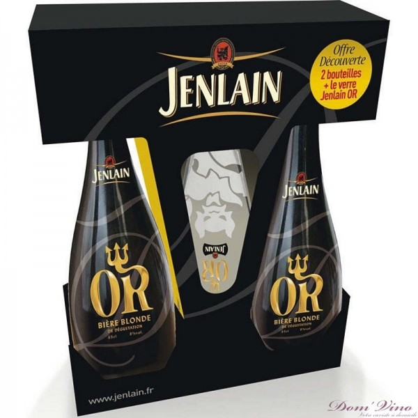 photo vue sur : http://domvino.fr/boutique/bieres-cidres/698-coffret-jenlain-or-75cl-x2-verre.html